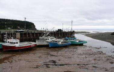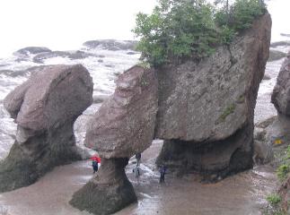 Clockwise from Upper Left: (1) Coastline of Fundy National Park, (2) Waterfall, Chutes Dickson Falls, in Fundy National Park, (3) example of largest Tides in the World, town of Alma, Bay of Fundy & (4) famous Hopewell Rocks, coastline of New Brunswick, Bay of Fundy