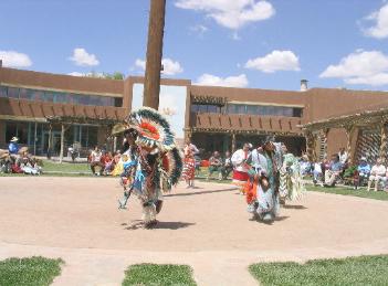 Left to Right: (1) At the Indian Pueblo Cultural Center, they have a museum, shops and a central courtyard where they put on performances of Indian Dances, (2) Central Avenue in downtown Albuquerque used to be part of old, famous Rt. 66 - here is the Kimo theatre, an example of a renovated building helping to keep the original feel, (3 & 4) the drive from Los Alamos to Santa Fe was very scenic: exposed strata on the sides of mountains, a river running through a small green valley, and (5) went to a Los Alamos and saw a couple of local museums, which provide information on the history of the Manhattan Project - here is a replica of "Little Boy" (or "Fat Man").