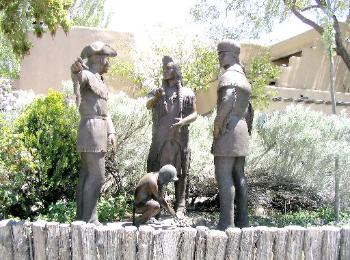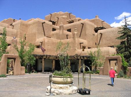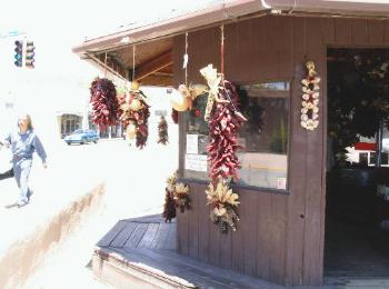 Left to Right: (1) A recently built hotel in downtown Santa Fe done in the authentic adobe style, (2) this small city is a haven for artists and has over 200 galleries (3) the Oldest Church in the U.S.A.: “The original adobe walls and altar were built by Tlaxcala Indians from Mexico under the direction of Franciscan Padres, ca. 1610,” (4) an interpretation of the Lewis and Clark exhibition, (5) central plaza in Taos, and (6) chili peppers drying in the sun.