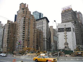 (3) typical street in the West Village, and (4) Office Building with outdoor art at Columbus Circle.