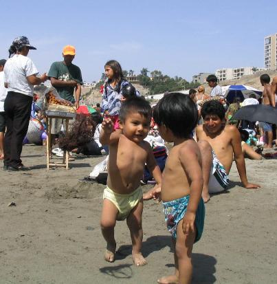 Left to Right, Top to Bottom: (1) The public beach in Lima - there must have been thousands of locals densely packed on this Sunday, (2) the City sits atop the cliff that surrounds this very large bay, (3) one nino is trying to get his friend to look at my camera, while a man (supposedly the father of one of the boys) looks on, (4) rocks arranged on an outcropping below the top of the cliff - very romantic, (5) San Martin Plaza was very nice. There was/is a beautiful statue of a man on horseback in the middle (presumably of Martin) & (6) Plaza Meyor, the main/central plaza of Lima, with the Cathedral De Lima and the Governor's Palace - very impressive.