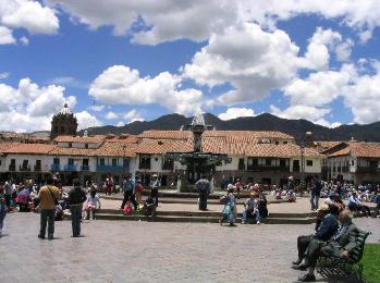 Left to Right, Top to Bottom: (1) Looking down upon the city of Cuzco- "El Peru" is written into the side of the mountain, behind and above the City, (2) it just so happened that the first day I was in Cuzco, they had a transportation strike, so I was forced to delay my trip to Machu Pichu for one day, (3) Plaza de Armas, the main square, (4) The Cathedral on Plaza de Armas with indigenous people sitting in front, (5) a reenactment of a chant to their G-ds at Qorikancha, which used to be an Inca temple covered with gold plates. When the Spanish came in 1533, they destroyed most of the Inca temples, melted down the silver and gold and sent it back to Spain. They kept the foundations and built on top of these larger stones, (6) a small backstreet in the San Blas Barrio of Cuzco, a bohemian, arts district, (7) hangin' with my good buddy in front of the Inka Museum, (8) examples of Pre-Columbian, native pottery - very advanced, (9) a burial crypt, they would mummify the more important citizens - priests, chiefs and the wealthy, (10) Saqsaywuaman - the massive stonework here is an incredible accomplishment, they used no mortar and the seems are water tight, look at the people in the upper left to get an idea as to how massive these fitted rocks are & (11) Pukapukara - where we took photos with baby llamas and the indigenous children, Inca site in background.