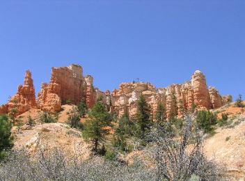 Left to Right: Bryce is one of the best known national parks and for good reason. (1) Bryce’s unusual geological features are its Hoodoos, “Pillars of rock, usually a fantastic shape, left by erosion.” The Paiute Indians who used to live in this region believed that the hoodoos were “Legend People’ whom Coyote had turned to stone,” (2) I walked the Bristlecone Loop Trail from Rainbow Point. This mile long walk was very pleasant – fresh mountain air, a spruce fir tree forest and wonderful panoramic views. I stopped at many of the look-outs along the way, and (3 & 4) the most incredible views, the ones for which Bryce is known are found surrounding Bryce Amphitheater, especially at sunset, when I was there, with all the reds and light beiges and contrasting shadows. Bryce was wonderful.