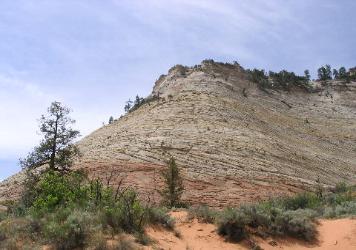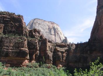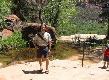 Left to Right: Zion was the most scenic driving of any of the parks that I had been to thus far. (1) On either side of the road cliffs, mountains and various geological formations would rise up, (2) at the Checkerboard Mesa, horizontal and vertical cracks on the side of a limestone mountain form this unmistakable checkerboard pattern, (3 & 4) I got off the Zion Canyon Shuttle at the Zion Lodge stop and walked/hiked the Emerald Pool Trail to the lower, middle and upper pools. The hike was of moderate difficulty and took a couple of hours, (5) the lower and upper pools had thin waterfalls dropping mountain water into them, and (6) another scenic view.